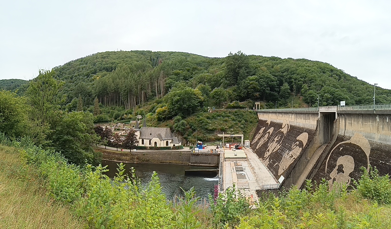Das Kunstwerk auf dem Vianden Damm ist übrigens von Klaus Davuen, von Kärcher gesponsert, und tatsächlich 2023 mit dem Hochdruckreiniger erzeugt worden.