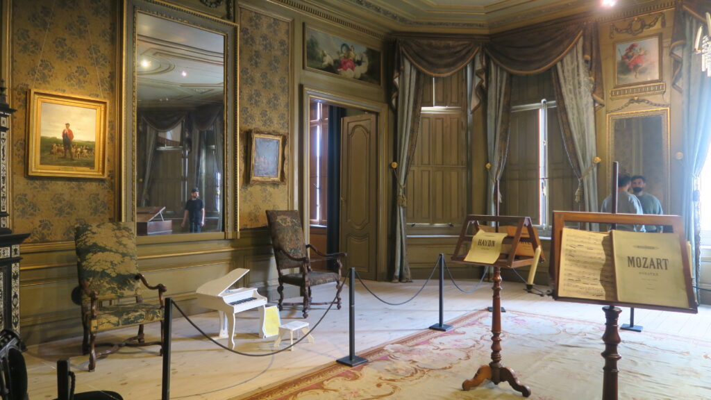 Nicht nur Bühne und Zuschauerraum mit Logen sind geöffnet, auch die Baustelle der aktuellen Renovierung (Aufgang) ist zugänglich. Die Räume, wie im Zitat beschrieben, erschließen sich eher über die Fotos.