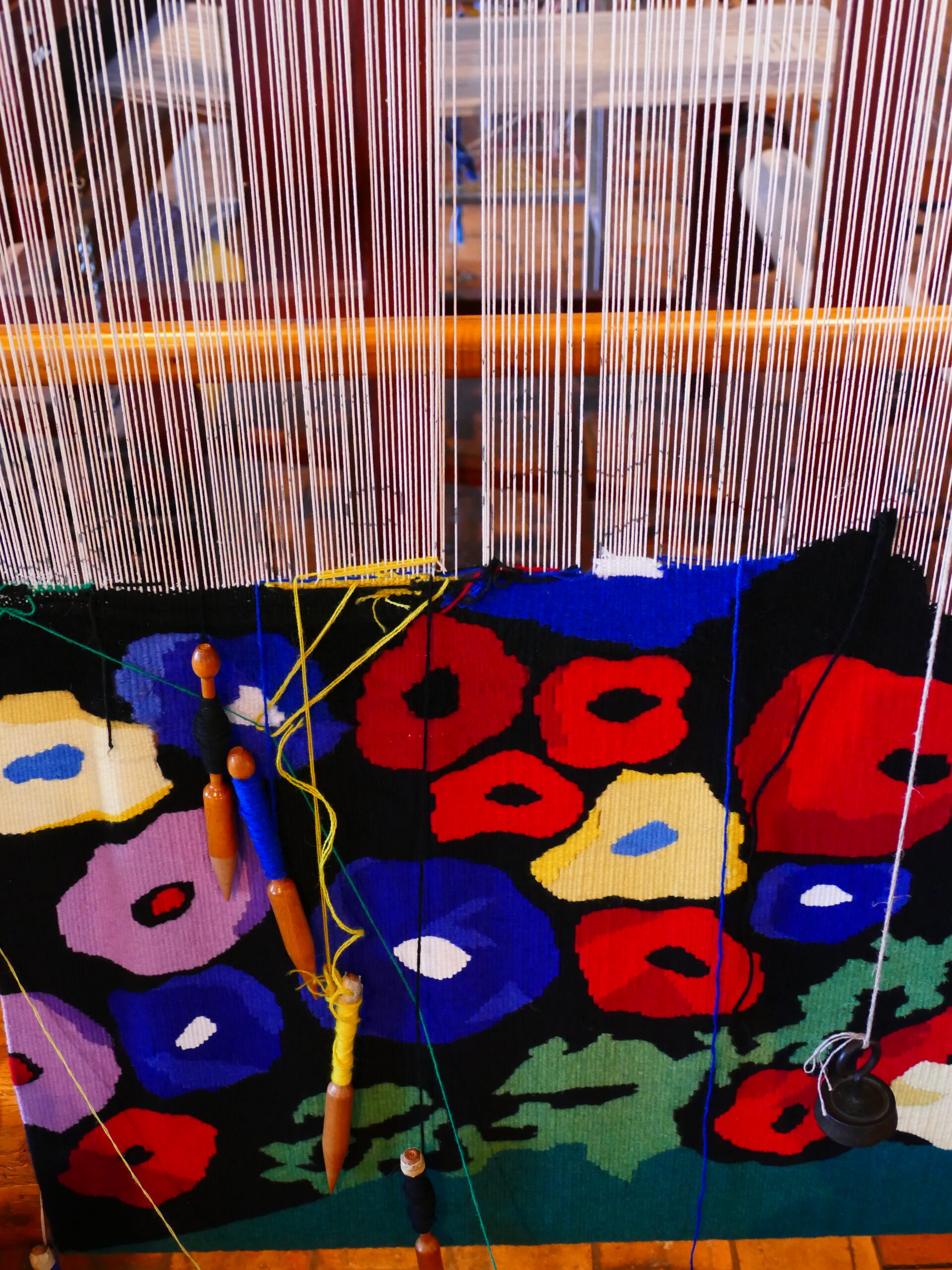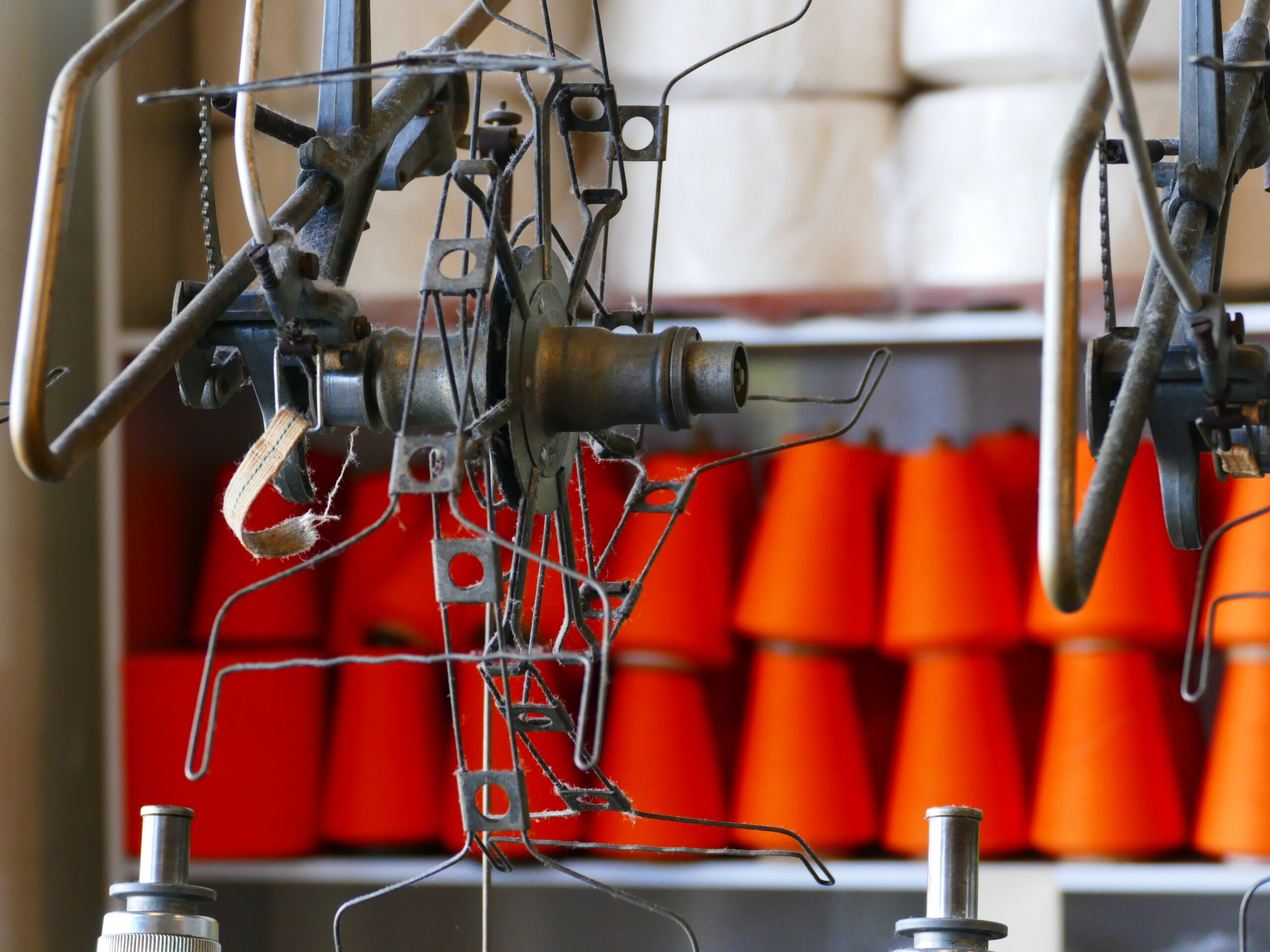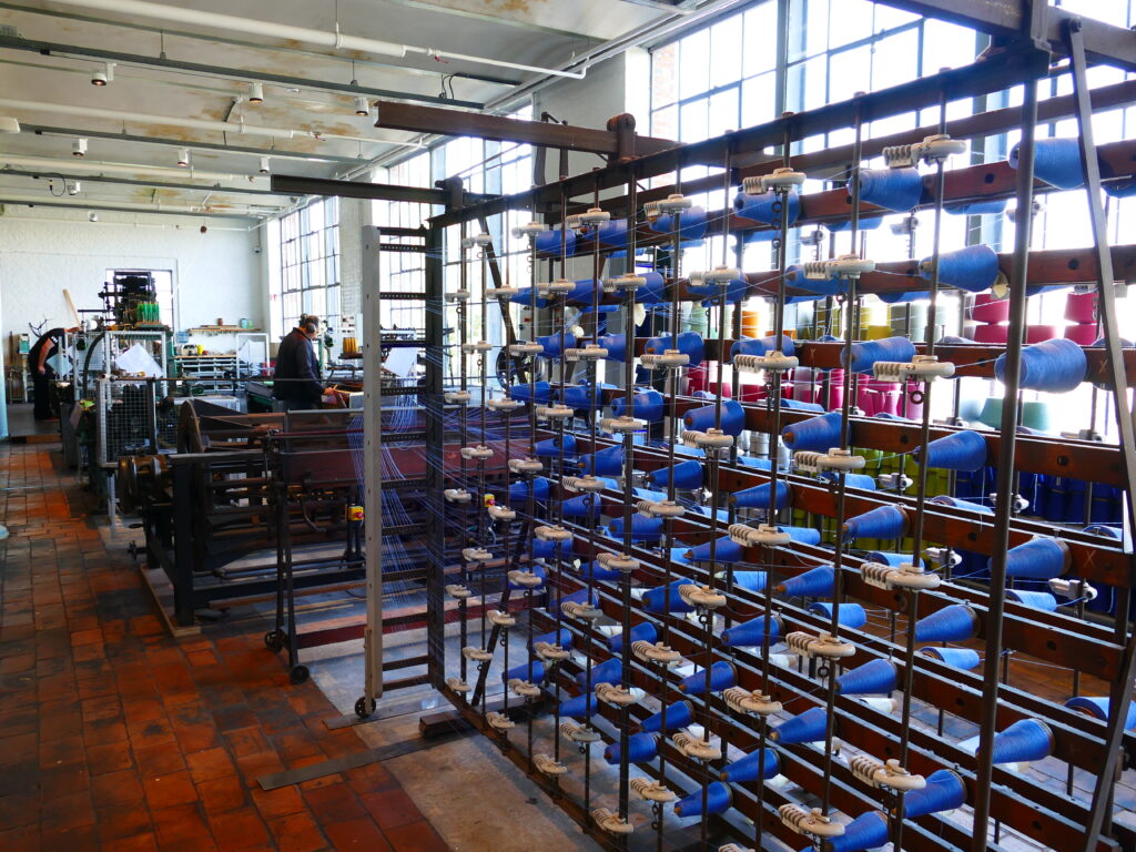 Mitarbeiter des Museums bedienen einen mechanischen Webstuhl, sind aber mit sich selbst beschäftigt, Publikum interessiert nicht. Persönliche Highlights: Die „gotische“ Dampfmaschine, Transmissionsantrieb, die detailierte Darstellung von Garn- und Tucherzeugung.