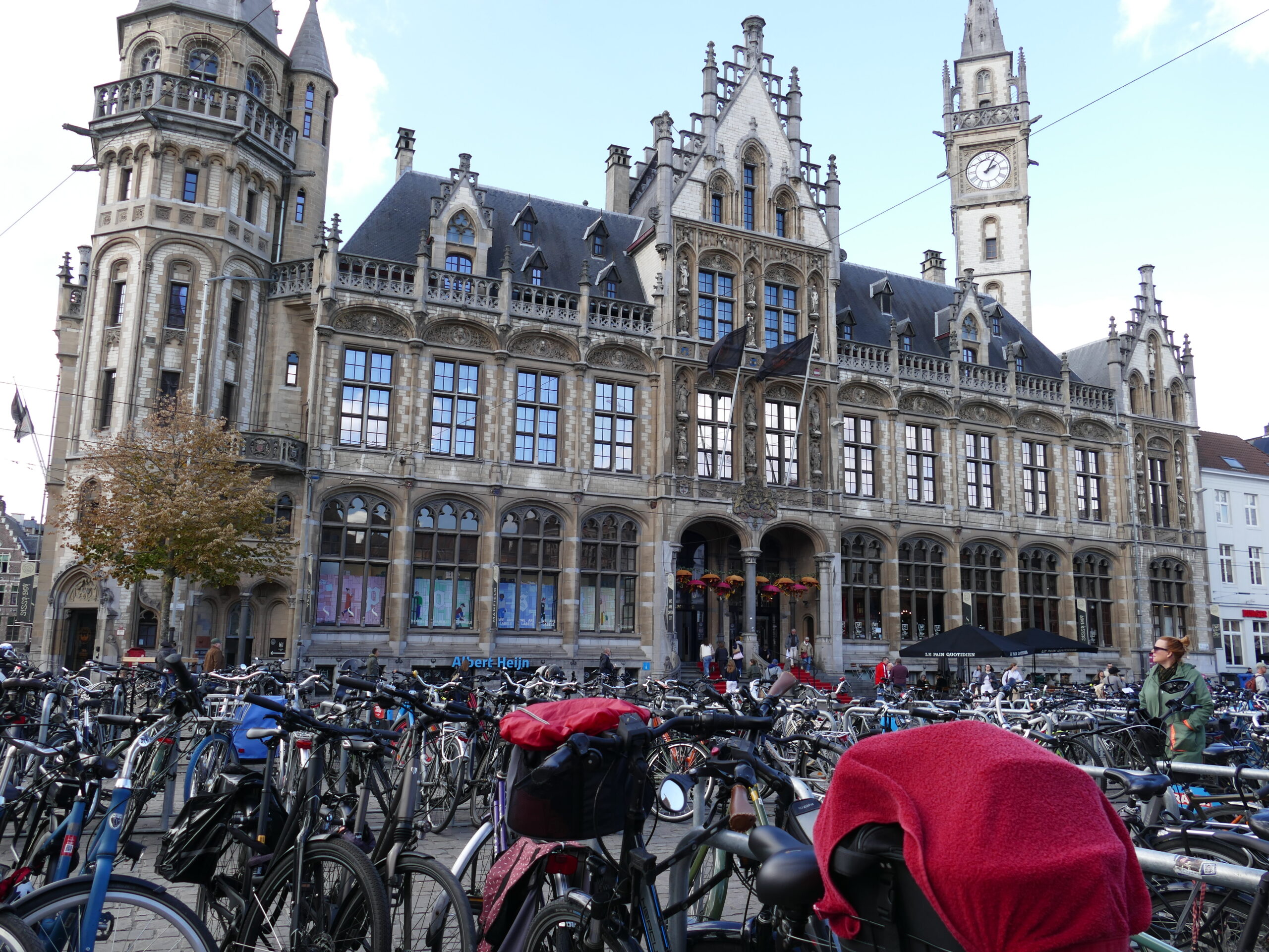 Der kleine Hunger meldet sich, heute einfach, Friet met Frikandel. Gestärkt bummeln wir an der Leie entlang, schöne Häuser, Läden, aber sehr touristisch. Bereits in der zweiten Reihe völlig ausgestorben, Nachsaison.