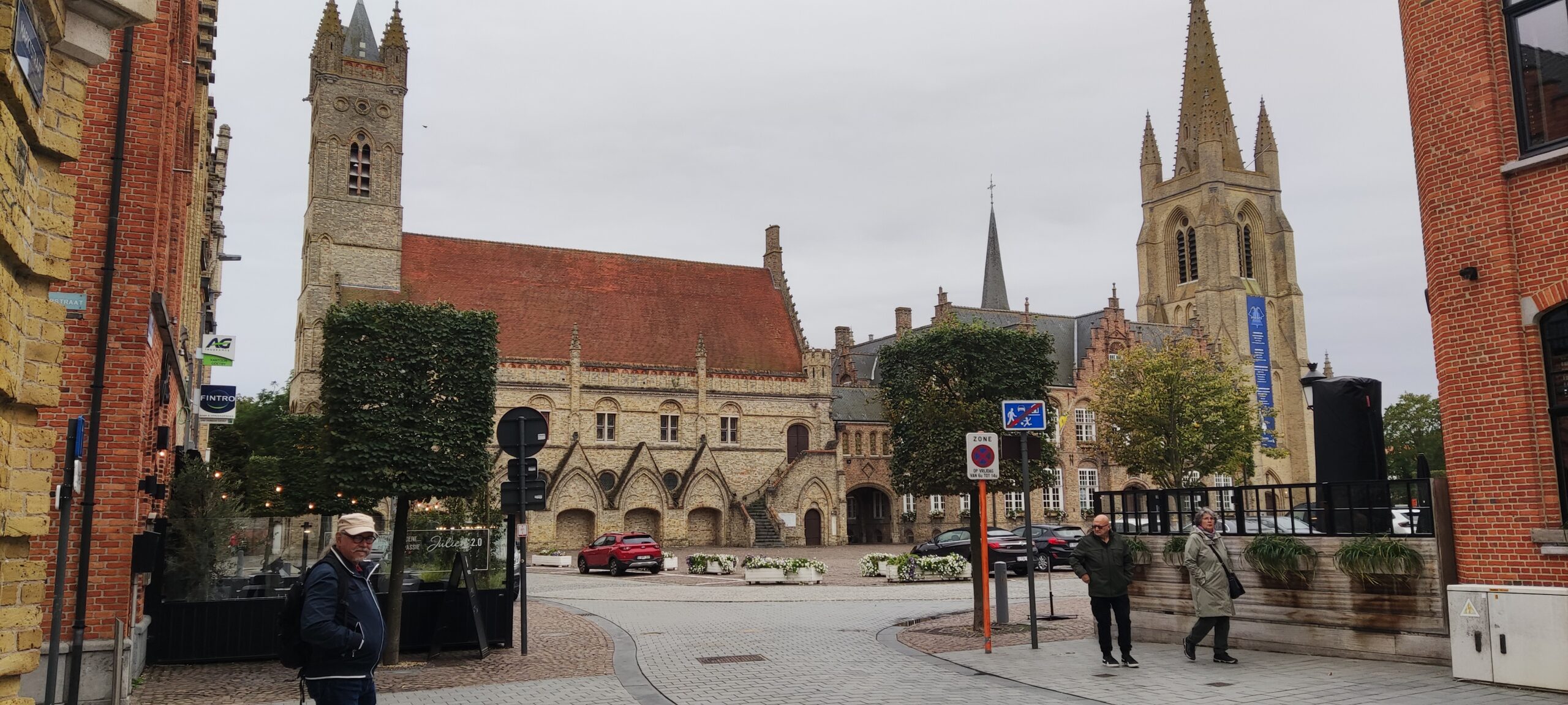 Nach dem Essen R zum Shoppen, N zum Belfried, dort zu spät, 45 min vor 18:00 h kein Einlass mehr. Kirche gegenüber, um den erneuten Regenschauer abzuwarten, schon vor dem Museum N nass, wegen selbstverschuldeter schlechter Planung, es war absehbar.