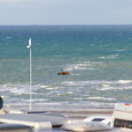 Zurück am WoMo chillen, abends noch zum Strand, immer noch extrem windig. N noch zu den an Land ausgestellten Resten des Mulberry-Hafens, einer der Pontons liegt noch am Strand, Reste der Senkkästen sind bei Ebbe sichtbar. Zur Vertiefung Wiki: https://de.wikipedia.org/wiki/Mulberry-H%C3%A4fen .
