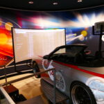 Völlig zugeguckt und ein wenig nass, da Regen Reflektion im WoMo. PS-Speicher: Absolutes Highlight. Start mit dem Rennsimulator (5 €/8 €), der Porsche wird über eine Hydraulik, die auch in Flugsimulatoren der Lufthansa eingesetzt wird, bewegt. Für den Unerfahrenen wird auf dem Bildschirm die Ideallinie angezeigt. Grüne Pfeile: beschleunigen, rot: Bremsen, aber sofort und deutlich. Schrill: Wenn man den Bremspunkt verpasst, ist das Gefühl des ausbrechenden und sich drehenden Wagens schon sehr realistisch 8-))).