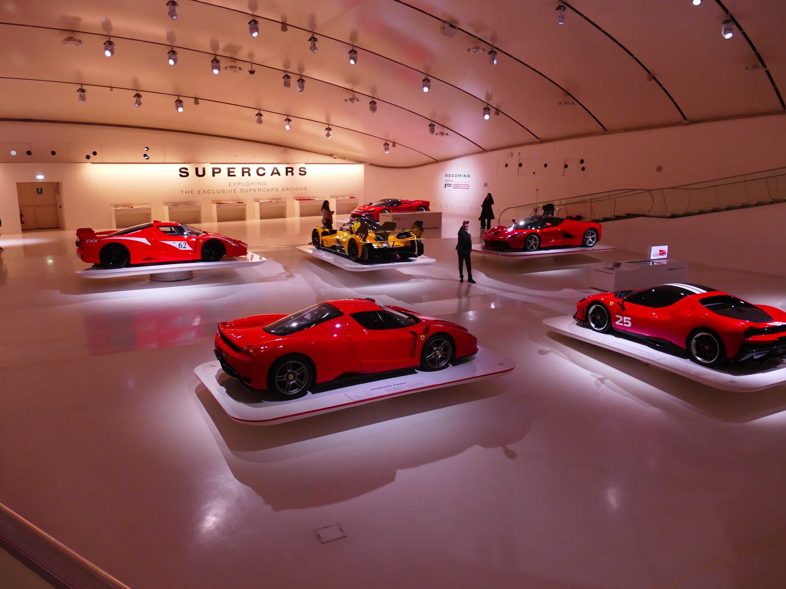 Da es noch einen zweiten Standort neben Modena nämlich Maranello gibt, liegt hier kein technischer Schwerpunkt, sondern aktuelle und ausgewählte historische Fahrzeuge können in der Ausstellungskathedrale angebetet werden – aber natürlich „nur gucken, nicht packen“. Ist aber schon eine beeindruckende Multimediaschau, Pavarotti hat auch seinen Anteil. Der Italiener mag Opern und Sie erinnern sich: „Helden sterben singend, und zwar im Tenor …“