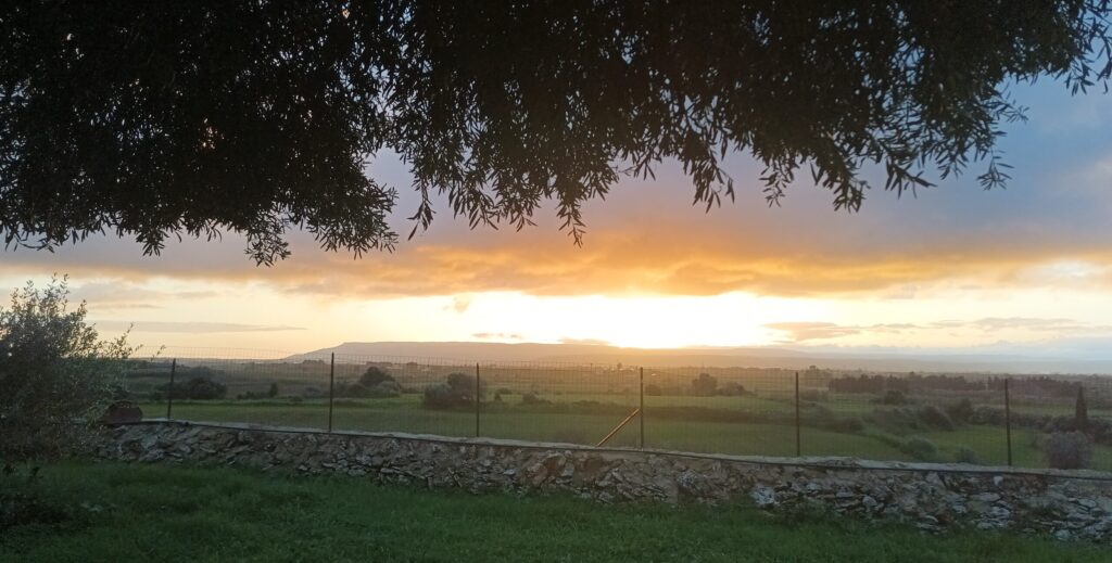 Wir erreichen Syrakus, Camping Rinaura, etwa ein Stunde vor Sonnenuntergang, schön gelegen, sehr ruhig, aber weit außerhalb der Stadt. Es gibt eine Bank unter einem Olivenbaum mit Blick ins Land, wir betrachten den Sonnenuntergang und genießen die Ruhe. Auf dem Platz sind noch drei weitere Wohnmobile, für das Tor erhalten wir einen Schlüssel, aber es ist so abgelegen, dass fußläufig wohl nichts erreichbar sein wird.