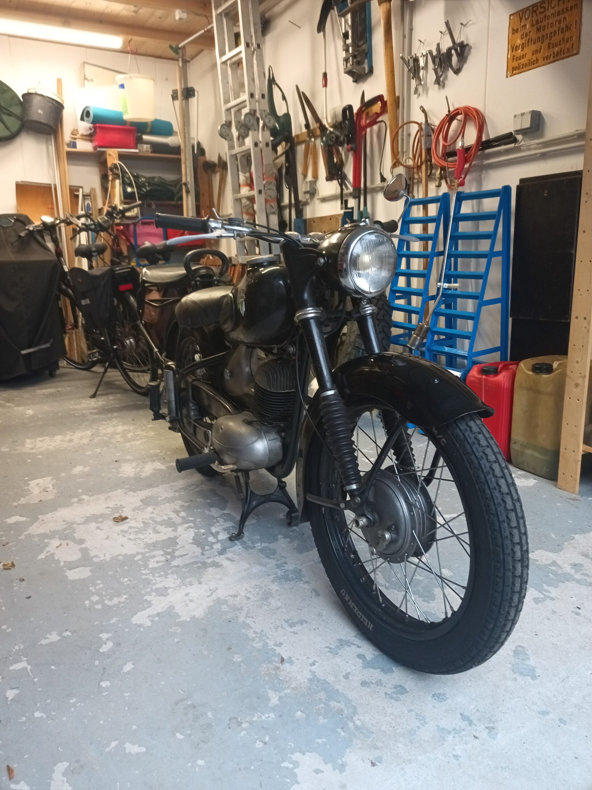 Als erstes mussten ja ersteinmal die Voraussetzungen für eine Restaurierung geschaffen werden. Aus vorherigen Aktionen und der Anmahnung durch das Lebensalter des Schraubers, war der Wunsch nach ein wenig Komfort deutlich. Als Ort standen zwei Möglichkeiten, hier Garagen zur Verfügung. Das Privileg der kurzen Wege, Garage 1: vom Flur direkter Zugang, so 5m, angeschlossen an Zentralheizung. Garage 2: Vom Wohnzimmer über Terasse, so 10 m, keine Heizung, aber Platz. Denn Garage 1 beherbergt den R59 Mini und im Winter die Kawaskai W650, da Garage 2 schon mal durch den Taupunkt geht. Die Entscheidung, da es zum Start ja noch einigermaßen mild war, fiel für Garage 2. Weiterlesen